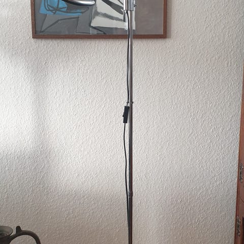 Forkromet rør og fod. Sort lampeskærm ø 45 cm,