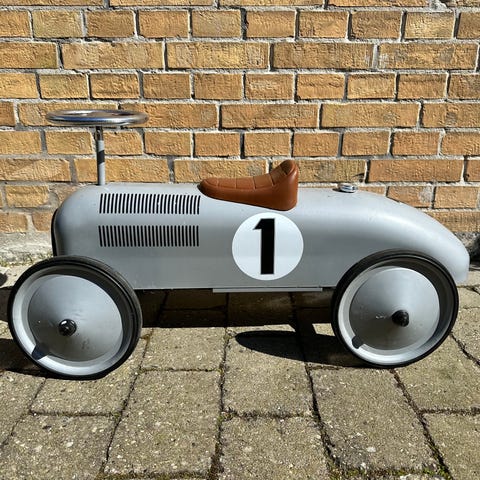 Denne skønne retro “løbecykel” har været børnenes første indendørs mobile legetøj. Den er meget stabil og nem at holde balancen på. Den kan ikke dreje skarpt men hjulene kører fint og det lille båthorn har været sjovt at lege med.