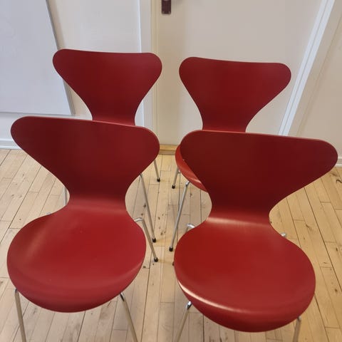 Brugt Max 20 gange, yderst velholdte 3107 stole. Chrome stel. Pris for alle 6 stole = 10.750,-