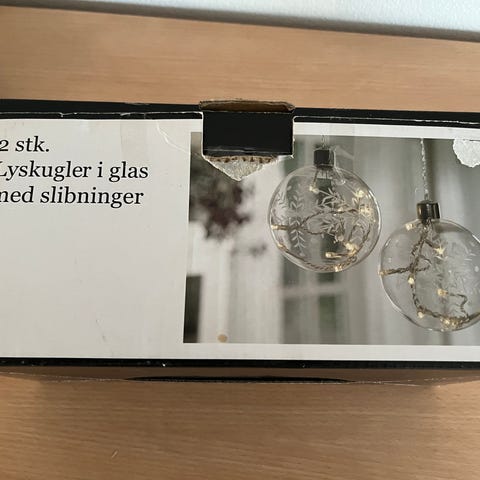 4 glaskugler til juletræ eller andet pynt. Hverken fjernbetjening eller Batterier følger med. Aldrig brugt.