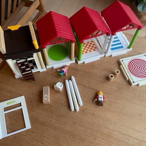 BRIO Bondegård, komplet med lade, dyb og tilbehør. Fin stand.