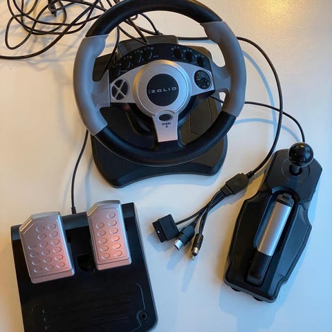 PS 2 rat og pedaler m. vibration. Blå og sort.