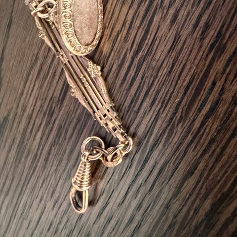 Flot og dekorativ vintage urkæde med fint ornamenterede led og hestehoved-vedhæng.