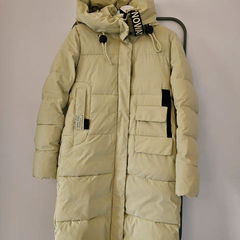 Dyne frakke varm og letvægt med hætte og snøreluk. Lynlås og knapper for samt magnetluk nederst. På ærmer lynlås og vindfang. I begge sider lynlås for bedre vidde. Sort inderfor