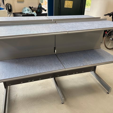 Er bygget med 2 store hylder indenunder og har både været brugt som messestand og som skænk i stuen.