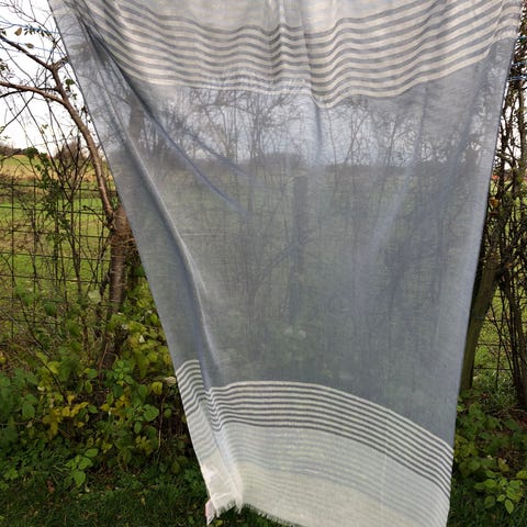 Fint farverigt tørklæde nok af polyester. Halvgennemsigtigt.