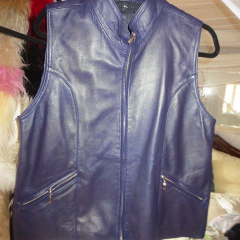Gestuz Sort Læder Vest til kvinder i størrelse M. Vesten er fremstillet i læder og har en sort farve. Designet som en udenærmet vest med lynlåslukning og flere lommer.