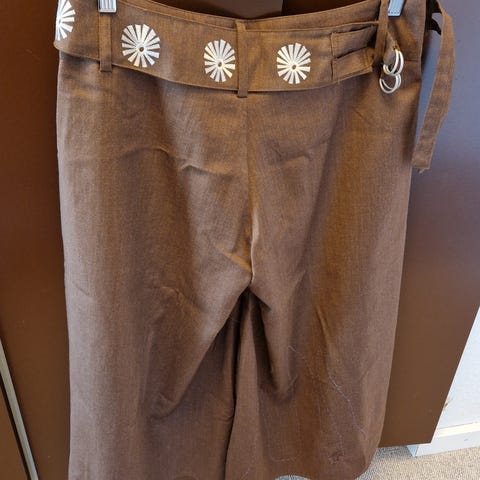 Fed buksenederdel fra St-Martins. Sort med bælte med broderi og finde stikninger i pink på det ene ben.