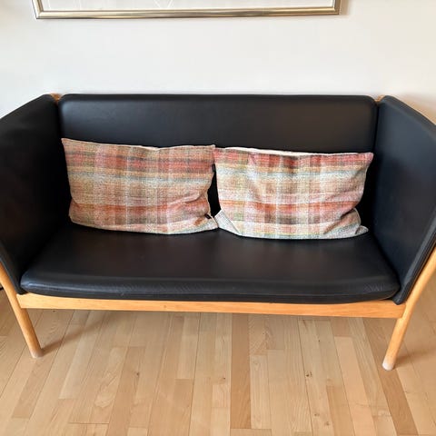 Sælger dette 2,5 år gamle hyndesæt i sort læder til J149 Erik Jørgensen tre-personers sofa, da vi ønsker et med uldbetræk i stedet.