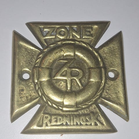 Atlas Expert pins in red and brown colors with metal backing. Used as decorative or collectible items.