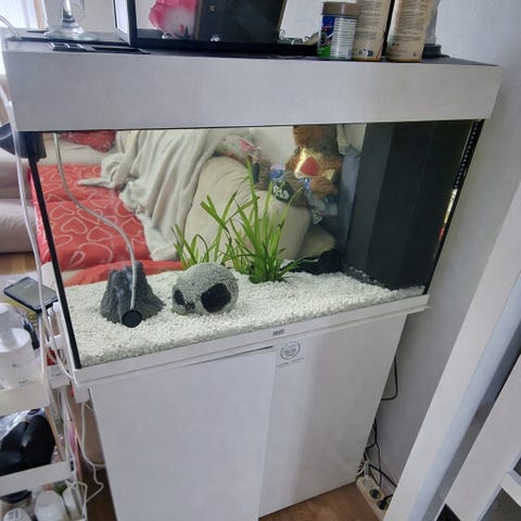 125 L akvarie inklusiv både pumpe, filtre, slanger og diverse øvrigt udstyr. Komplet pakke klar til brug