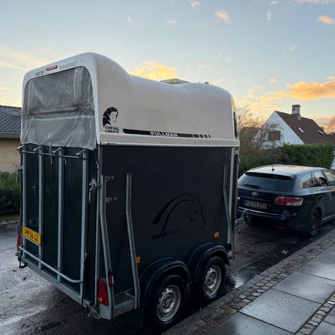 🐴 1 hestes trailer, med plads til 2 - skillerum kan udtages og der kan tilkøbes lange bomme så der er stort rum.
