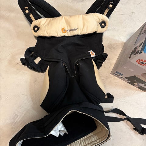 Ergobaby 360 bæresele. Designet til at give komfort og støtte ved bæring af baby i flere positioner. Materiale og størrelse er tilpasset for at sikre ergonomisk korrekt brug for både barn og voksen.