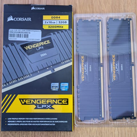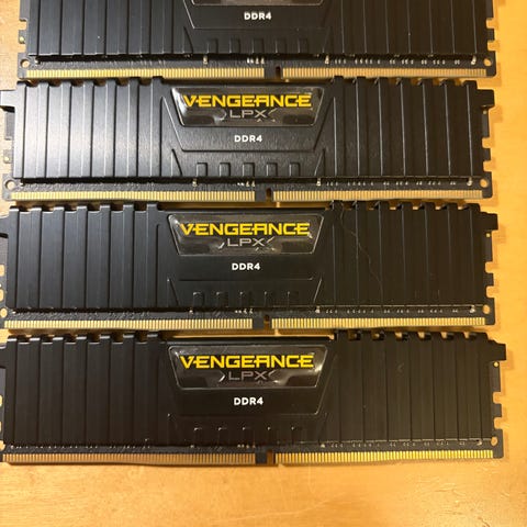 Sælger mine 4×16GB Corsair Vengeance DDR4-3600 MHz RAM.
