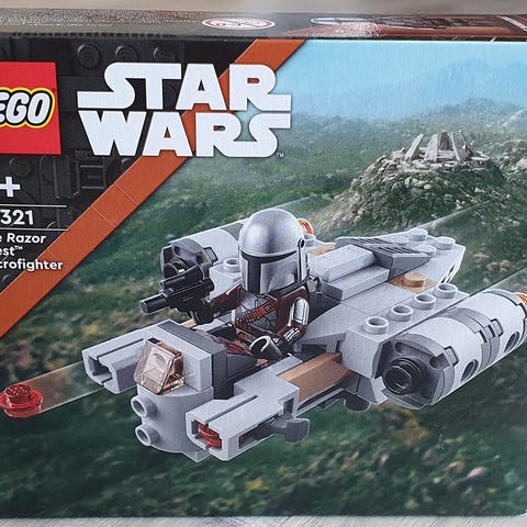 LEGO Star Wars Razor Crest The Child sæt. Inkluderer detaljeret model af Razor Crest skibet med tilbehør og figurer fra Star Wars universet, designet til børn fra 7 år og opefter.
