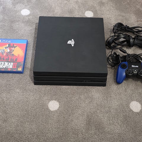 Playstation 4 Pro fra 2018 sælges inkl div ledninger og 1 controler. Spil kan evt købes med ved interesse fx Pro Evolution Soccer 2016, Assassins Creed, Mafia, el Battlefield.( ekstra pris) Sælges da den ikke er brugt længe.