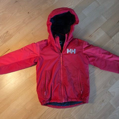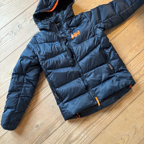 Yderst velholdt semilang Helly Hansen dunjakke med praktisk hue sælges, da min datter desværre er vokset ud af den.