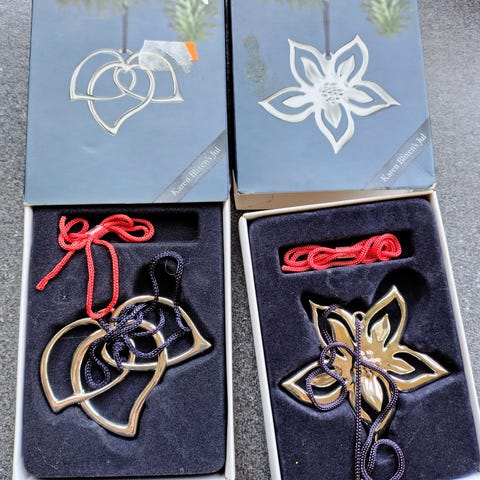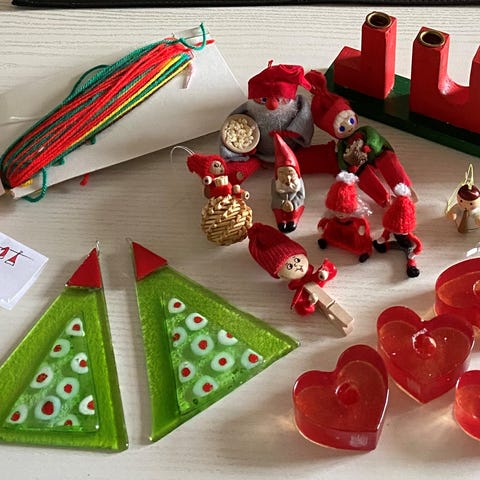 2 stk. nisser i filt. Kan hænges op er 15 cm høje.