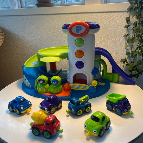 Stor lastbil og værktøjskasse med masser af værktøj. De to skruvmaskiner er på batteri, men den funktion er defekt. Lastbilen har også batteri som skal skiftes, men burde fungere. Lastbilen kører inke af sig selv, men laver lyd. Vi har bare valgt ikke at skifte batteriet.. Mange dejlige timer for børnene at lege håndværker der hjemme.