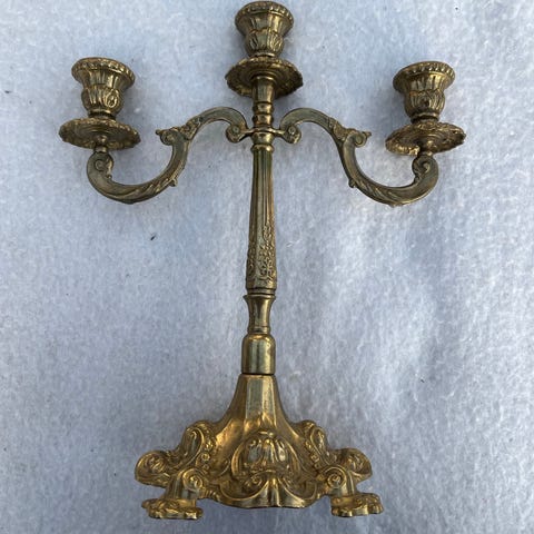 Svensk 3 armet messing lysestage
