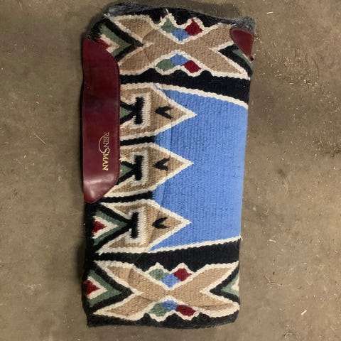 Flot og velholdt pad str. 16" i uld og cognacfarvet skind. Brugt meget lidt.