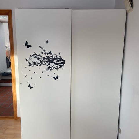 2 Ikea skabslåger til skab med målene 100cm bredde og 229cm højde. Hvid ramme. Hængsler følger med.