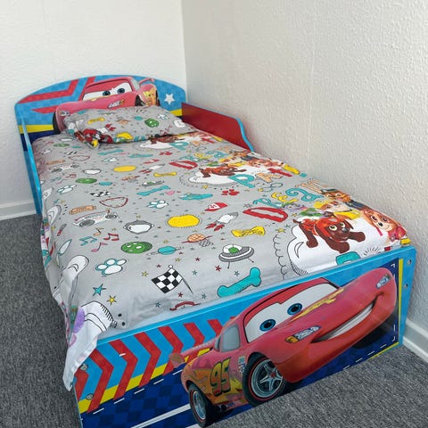 Drengeseng. Racerbil med lys og lyd og 2 fjernbetjeninger. Købt på mma action for ca 3 år siden. Sælges nu da min dreng er ved at være for “stor” til den. Alt virker fint. Der er blot pillet lidt ved nogle af klistermærkerne. Se billeder. Mærke er ikke Porsche, men kan ikke få det fjernet fra annonce.