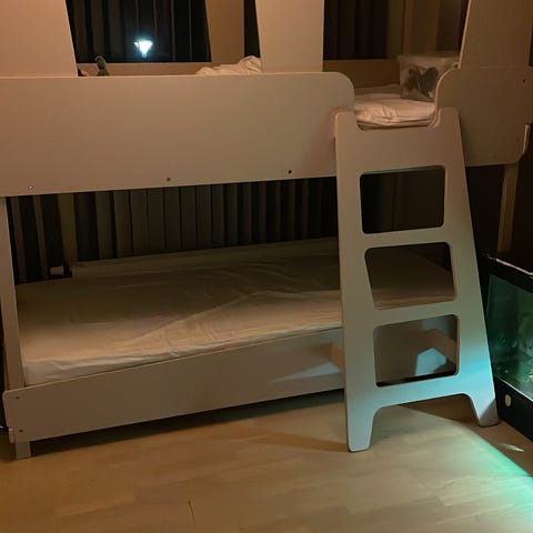 Racerbil seng med lys og lyd + madras