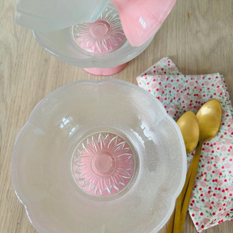 8 små dessertskåle / portionsskåle af glas med enkelte slibninger i bunden. De 6 skåle er uden afslag, de 2 sidste har et enkelt næsten usynligt lille afslag.