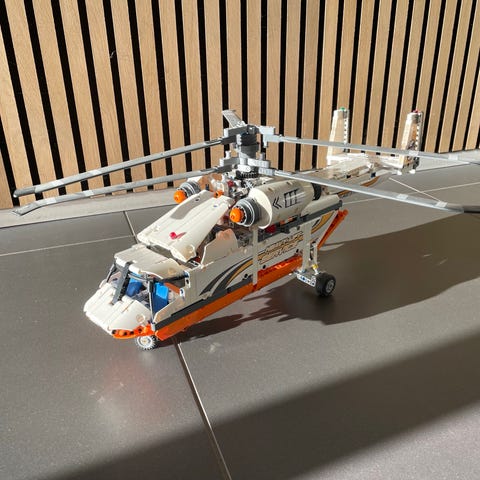 LEGO Technic Helikopter legetøj med detaljerede komponenter. Sættet inkluderer en modelhelikopter med bevægelige rotorer og tilhørende instruktionsbog. Egnet til byggeentusiaster og fans af LEGO Technic serien.