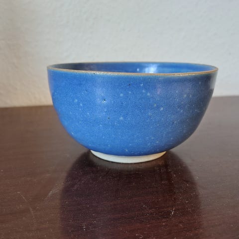 Blå Italiensk keramikskål med flettet snorrelief og fod. Skålen har en dekorativ snorrelief på ydersiden og en rund fod.