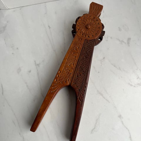 Lækker stor nøddeknækker af palisander og messing. Denne klassiske elegante nøddeknækker er lige så smuk, som den er praktisk. Et smart design, der går tilbage til 1950'erne. Længde ca. - 21 cm. Brugt pæn stand. Fra ryge - og dyrefrit hjem.