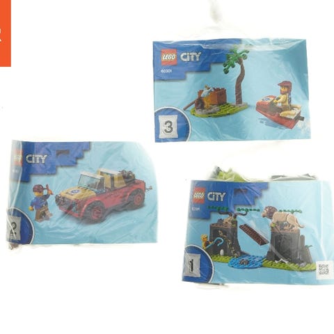 LEGO City dyresafari sæt med helikopter, terrængående køretøj, elefant, krokodille og flere tilbehørsdele. Sættet indeholder minifigurer og detaljerede elementer til leg med safari- og dyretema.