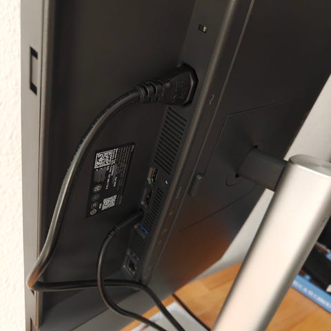 Den kan lade din bærbare med op til 90w samtidig med at den modtager billede signal via USB-C kabel. Altså et enkelt kabel til det hele.