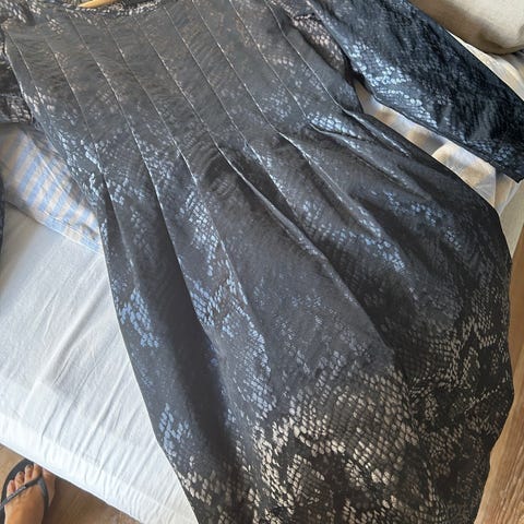 Bitte Kai Rand jule/ cocktail kjole i størrelse M. Passer fint str. 42-46. Den falder løst og lækkert. Kjolen er grøn og lavet af uld 10%,, tencel 50% og 40% bomuld. Lækker blød og lun med 2 gode lommer.