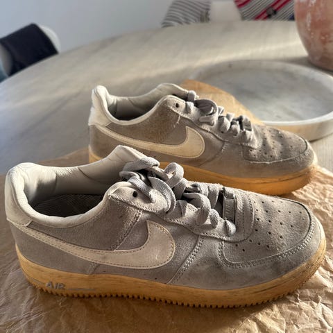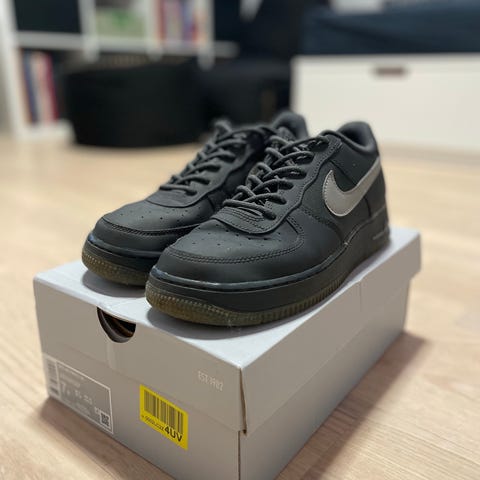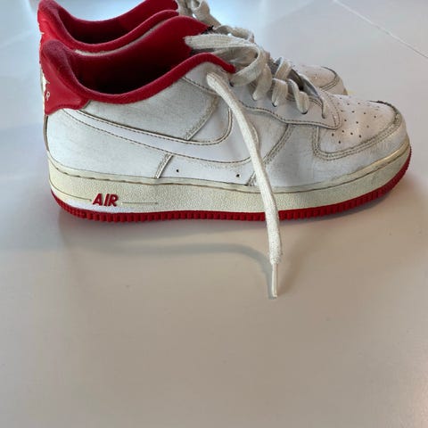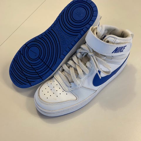 Nike drengesko i størrelse 40, hvid farve med rødt Nike-logo. Skoene er lavet til drenge og er fremstillet af materialer egnet til børnesko. Skoene har snørebånd og en slidstærk sål.