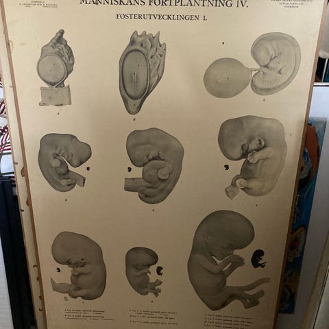Gammel svensk undervisningsplanche, anskuelsestavle med to sider. Svenska Skolmaterielförlaget, Gunnar Saietz, Stocholm. Motiv: Planternes liv: 2. stammen og oldenborrens livscyklus. /Vidste du det? Oldenborrens larve lever tre år i jorden, inden den forpupper sig. Den voksne oldenborre lever først nede i jorden og kommer først frem om foråret det fjerde år. Tidligere talte man om oldenborreår hver fjerde år. Mål: 70 x 100 cm. Da det er gamle plancher, kan der forekomme patina. Fra ryge- og dyrefrit hjem.