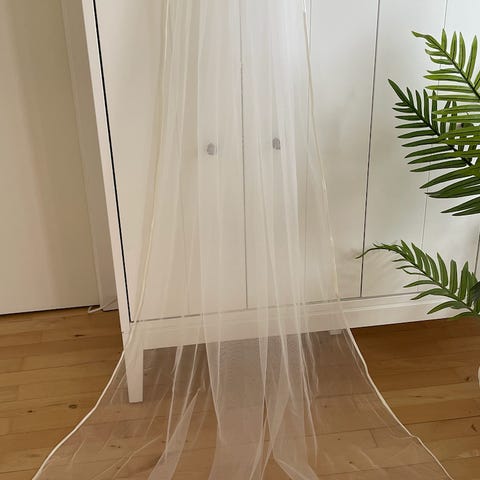 Brudeslør med rhinesten langs kanten af sløret. Tyllet er finmasket og blødt.
