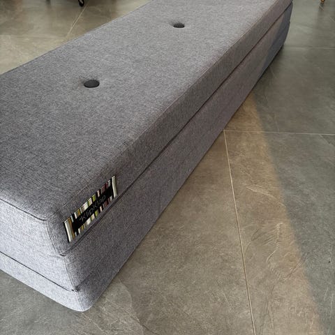 ByKlipKlap KK3 fold single madras i mørkegrøn med lysegrøn knap. I flot stand.