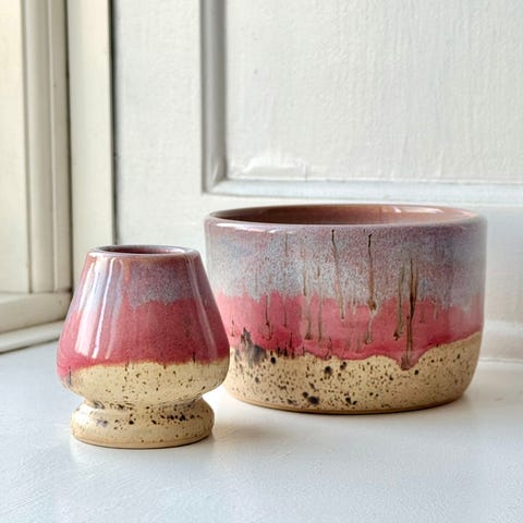 Matcha te-sæt med skål, piskeris og si