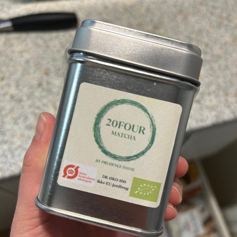 Matcha te-sæt bestående af to keramiske skåle med sort og gråligt mønster, et bambus piskeris samt en lille metalsi. Sættet er velegnet til tilberedning af matcha te.