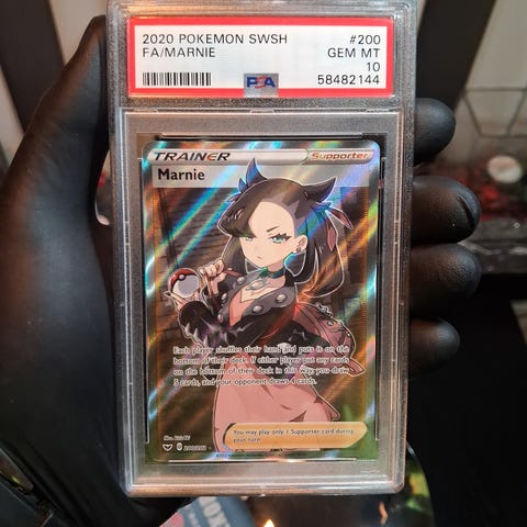 Marnie's Pride søger et hjem og er klar til kamp i en PSA 10, og i en formidabel stand:)) Alle mine priser er taget fra pricecharting, som dækker det amerikanske marked. De er lagt på, eller under gennemsnittet af de solgte, og hvor du spare kattepinen med told, hvis det nu skulle være et lidt mere specielt kort du har i tankerne. Jeg sender kun ud med GLS når det gælder PSA slabs, da man kan føle sig mest tryg der efter min mening. Mvh Dennis