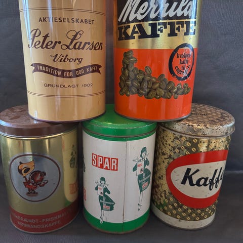Kaffe samling af kaffemærker, indeholder forskellige motiver og illustrationer relateret til kaffe. Mærkerne er samlet i en mappe med ca. 660 individuelle mærker. Mærkerne varierer i design og farve. Spændende udbud