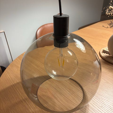Dekorativ loftlampe i turkisfarve. Giver flot lys over spisebordet - fejler intet.
