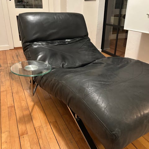 Eilersen control lænestol. Soft anilin sort læder. Fuld funktion dygtigt. Med 2 lommer bag på.