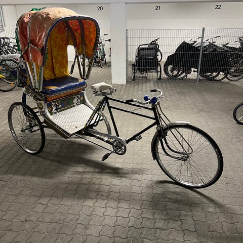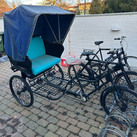 Fin og sjov cykel af rickshaw typen. Med brugsspor. Alder ukendt.