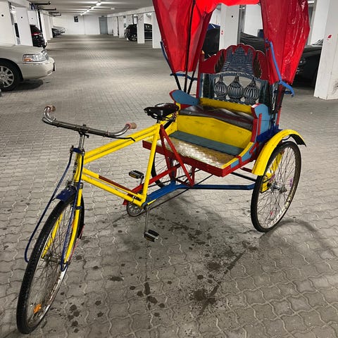 Fin og sjov cykel af rickshaw typen. Med brugsspor. Alder er ukendt. Kan køre.