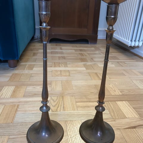 Gamle lysestager i funkisstil i massiv bronze