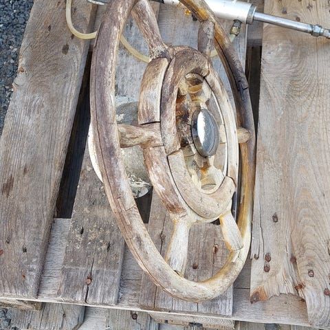 Kraftig styrekonsol i glasfiber(b 44cm, d 33cm og h 84cm) Der er vire, kraftige hjul, tandrem og aksel.