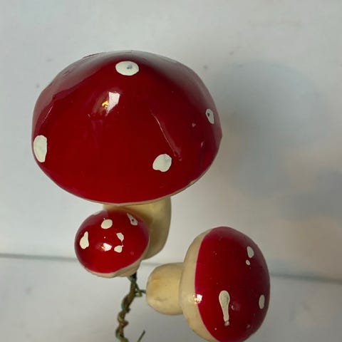 Ældre stor fluesvamp paddehat svamp Ca 10 cm ø fin stand retro julepynt